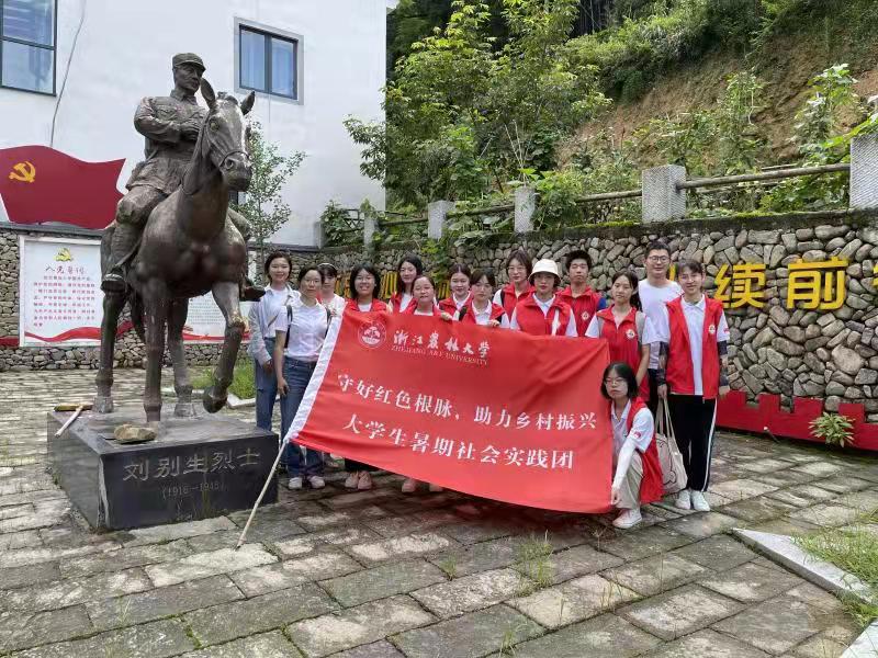浙江农林大学文法学院二十余名师生组成的“守好红色根脉,助力乡村振兴”大学生暑期实践团,7月9日前往杭州市临安区高虹镇开展社会实践活动。作为“双百双进”共同富裕省级暑期实践团队,本次活动致力于探索共同富裕创新方法。团队先后奔赴高虹镇党群服务中心和龙上村开展先锋人物访谈和革命历史遗迹探访活动。本次暑期社会实践受到了中天集团乡村振兴项目的大力支持,以及高虹镇党委、政府和团委的高度重视。鼓励青年师生追寻党的光辉足迹和铭记光荣历史,守住红色根脉,助力乡村振兴!