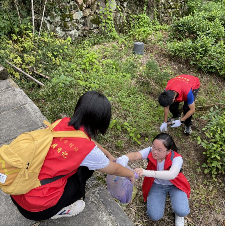 实践团的同学们通过实地参观探索,学习了解新四军历史、参观乡村振兴纪念馆,深感现在美好生活来之不易,深知要通过实际行动珍惜当下幸福生活、守护美丽乡村。在进行充分的安全教育后,同学们在龙上村的繁茂山野中开展了捡拾净山活动,并将捡拾的垃圾分类投放到回收点,得到了在场村民的肯定。