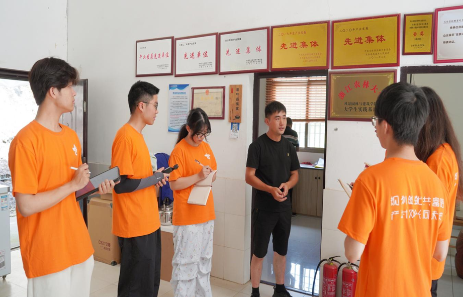 傍晚,实践团成员分组走村入户,发放调查问卷,了解村民姓氏分布、家庭结构、常驻情况与收入来源,为后续茶旅融合发展和景观空间优化提供第一手资料。当日晚间,在茶园实地走访中,叶占形书记表达了对茶园交通系统完善的设想,但亦坦言在生态红线及政策约束下,项目推进仍面临现实困境。