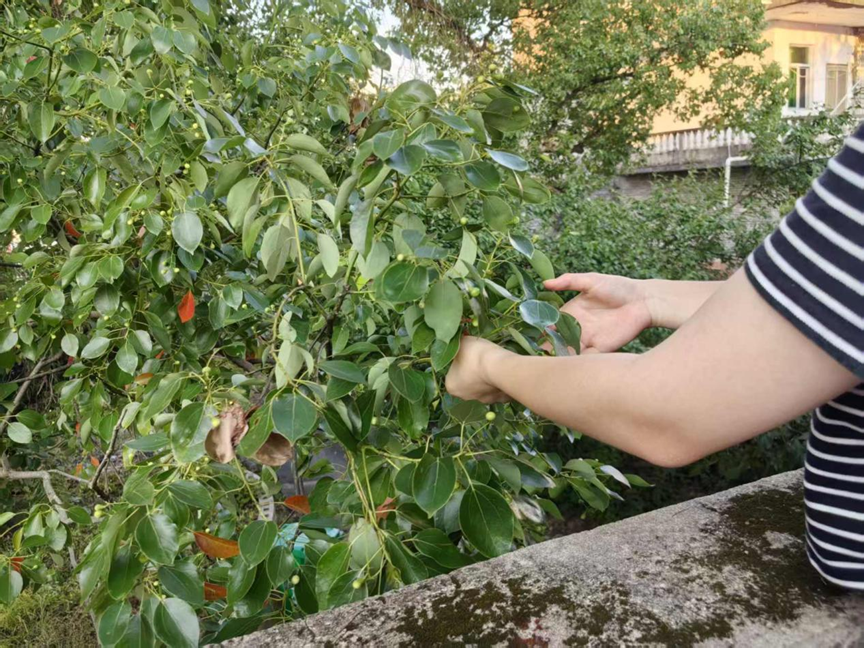 实践团采集了古樟的叶片和新生果实作为观察标本。初夏时节,樟树新生的绿色核果与树叶颜色相近,远观不易分辨。果实呈圆球形,表面是一层薄且光滑的绿色外皮,成熟后会逐渐青绿色转为紫黑色。成员们了解到,樟树的根、枝、叶富含多种挥发物质,具有独特香气,大家所熟知的樟脑丸是其香气的代表性产物,具有驱虫防蛀作用。