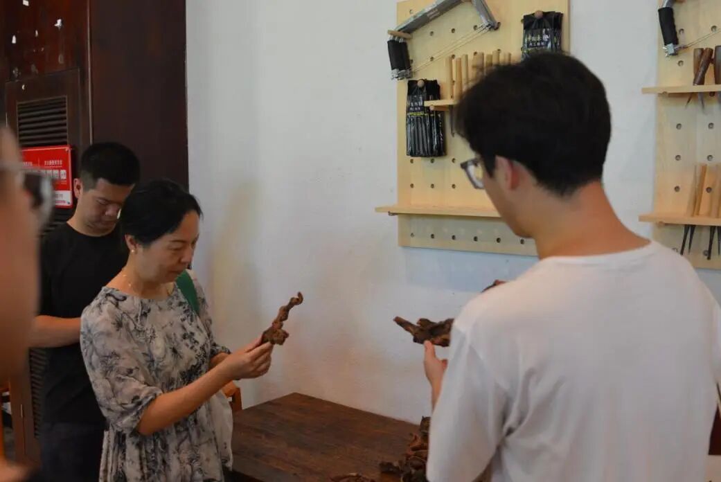 在座谈会上,实践团成员表现出活跃的思维,他们紧密结合专业知识和实践观察,踊跃提出问题。这些问题直接触及行业的核心关注点:景区采取了哪些行之有效的策略来吸引日益成为消费主力的年轻游客群体?根雕研学活动的设计、推广及其教育价值如何实现最大化?方逸群凭借其丰富的管理经验和一线洞察,逐一进行了深入浅出的解答,为实践团提供了极具价值的行业洞见和实操经验。