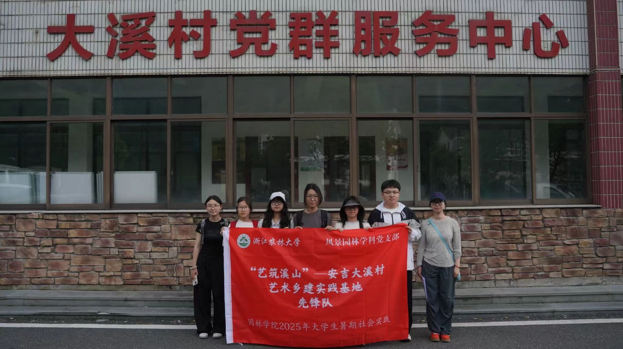 为响应国家乡村振兴战略,探索艺术赋能乡村人居环境提升的创新路径,近日,我院“艺筑溪山”暑期社会实践团深入湖州安吉县大溪村,开展实地调研与设计实践。团队以“生态筑基·艺术赋能”为核心,通过村落景观改造、文化空间活化及村民参与式设计,系统探索美丽乡村建设的可持续模式,助力乡村实现“环境美”与“人文美”的有机统一。