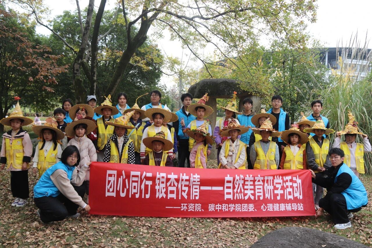 11月23日,环境与资源学院、碳中和学院团委携手临安区党群服务中心,开展了团心同行·银杏传情--自然美育研学活动。学院青年志愿者化身“自然导师”,带领孩子们走进秋日童话,共赴一场趣味十足的“落叶魔法帽”创作之约。