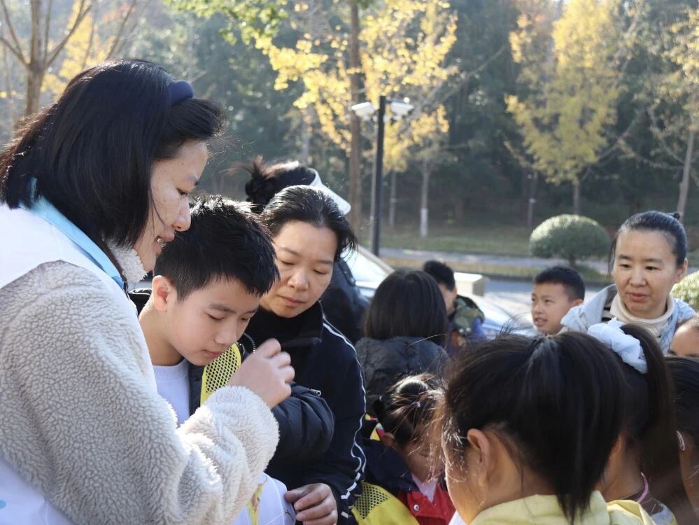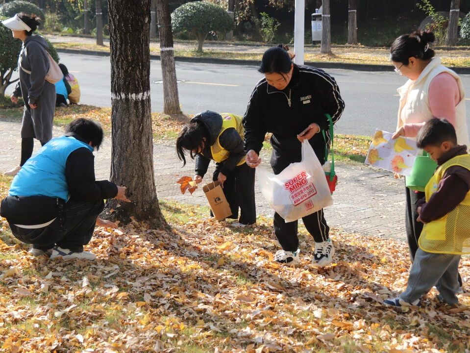 伴随着孩子们的欢声笑语,活动正式开启。在志愿者的耐心引导与家长的温情陪伴下,孩子们兴奋地穿梭在铺满落叶的银杏大道上,仔细寻找着心目中最独特、最美丽的落叶。志愿者们始终紧随左右,时刻关注着孩子们的安全,并不时讲解落叶背后的植物小知识,让捡落叶的过程成为生动的自然课堂。