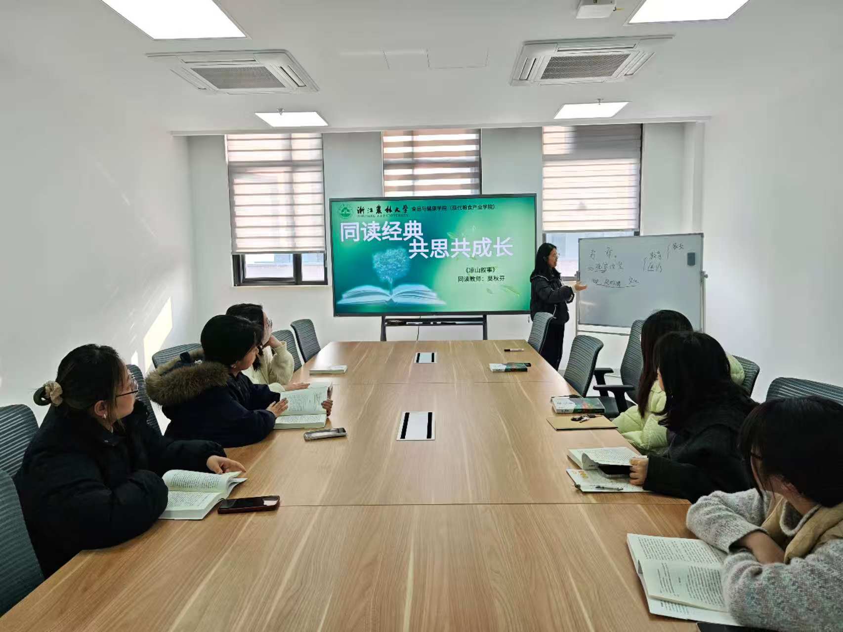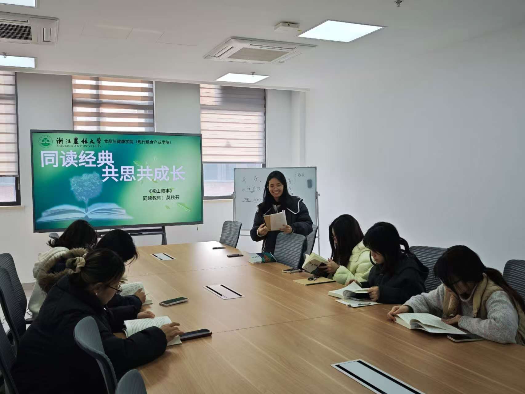 12月17日,《凉山叙事》师生共读小组于学19-507举行读书分享会。活动伊始,莫秋芬老师播放了一首充满大凉山风土气息的悠扬歌曲。随后,她向同学们介绍选择《凉山叙事》的缘由,此书是记录凉山脱贫攻坚历程、承载当地历史文化的鲜活档案。无需精读便能在翻页间触摸彝乡发展脉络,感受大凉山里的人情冷暖。莫老师希望通过共读,让大家走进凉山,了解当地教育、医疗变迁,读懂脱贫攻坚背后的艰辛与坚守。