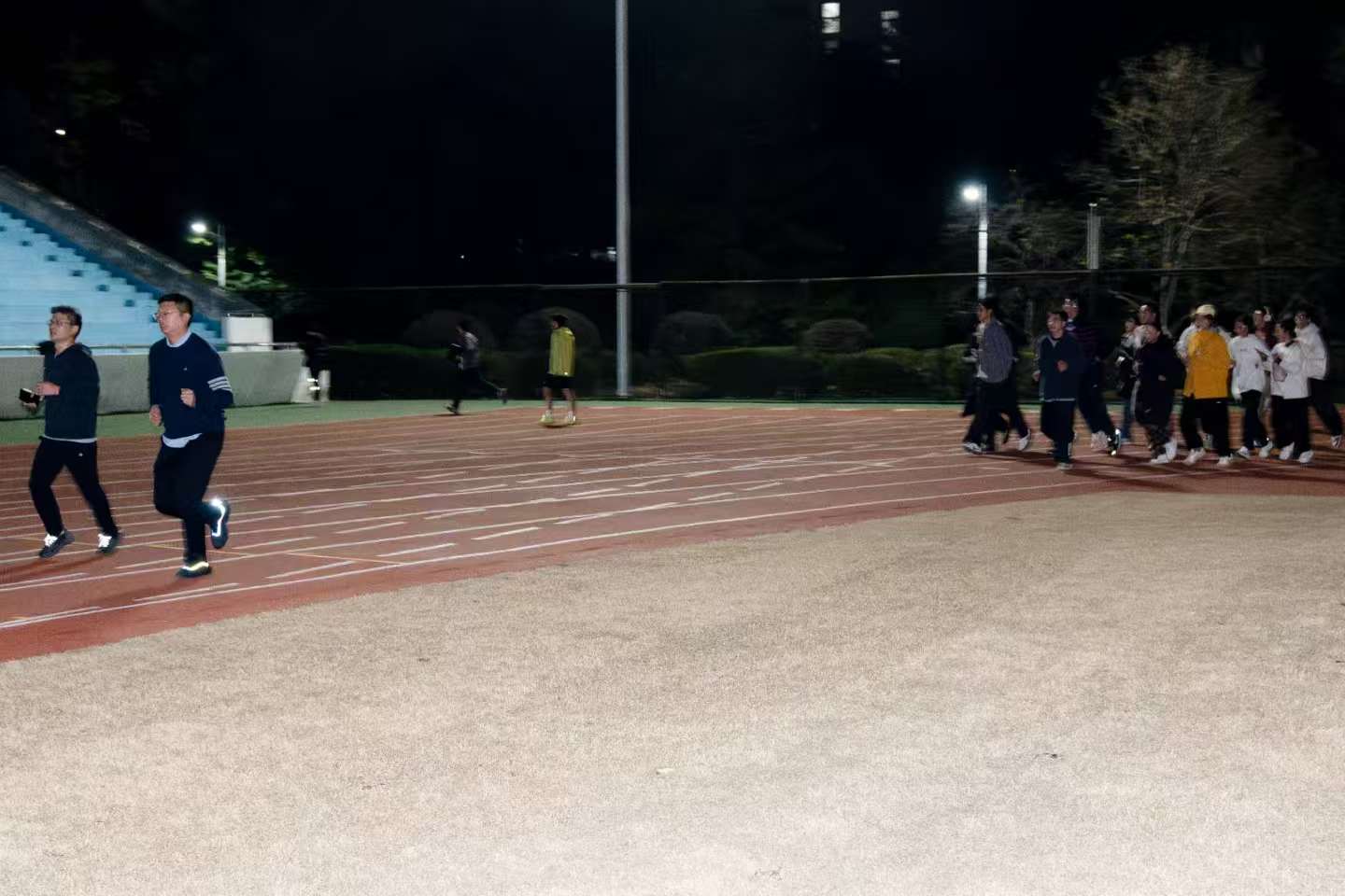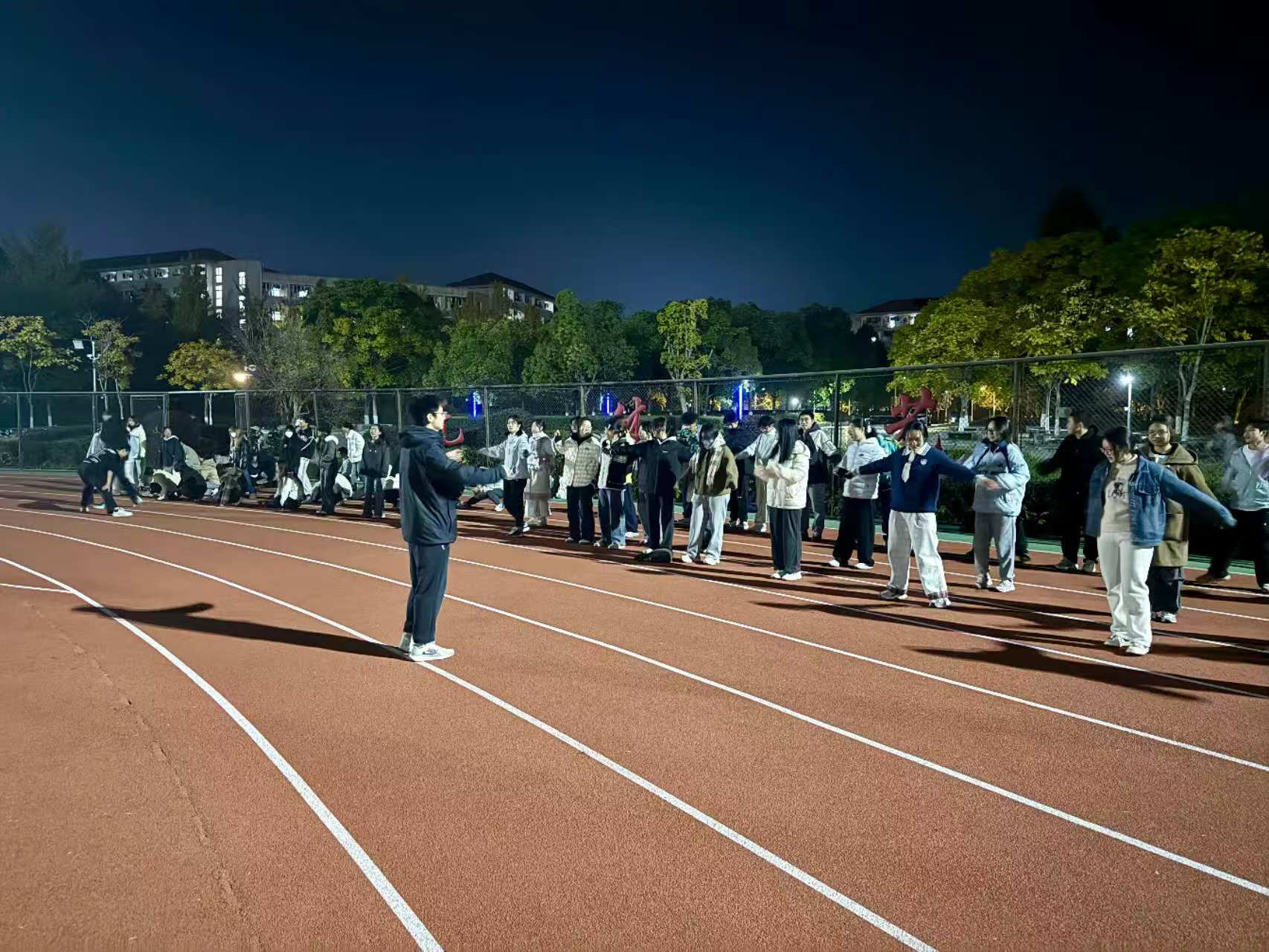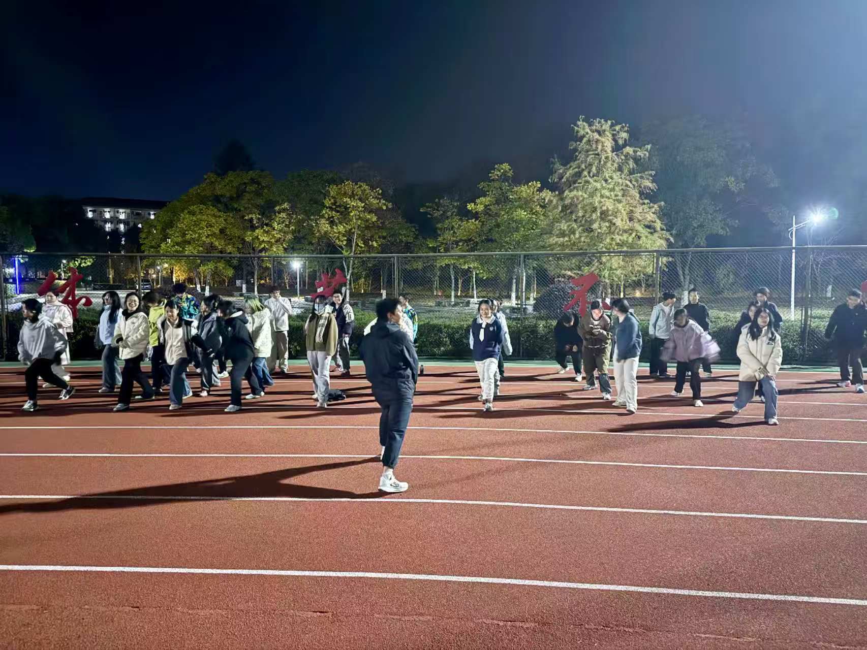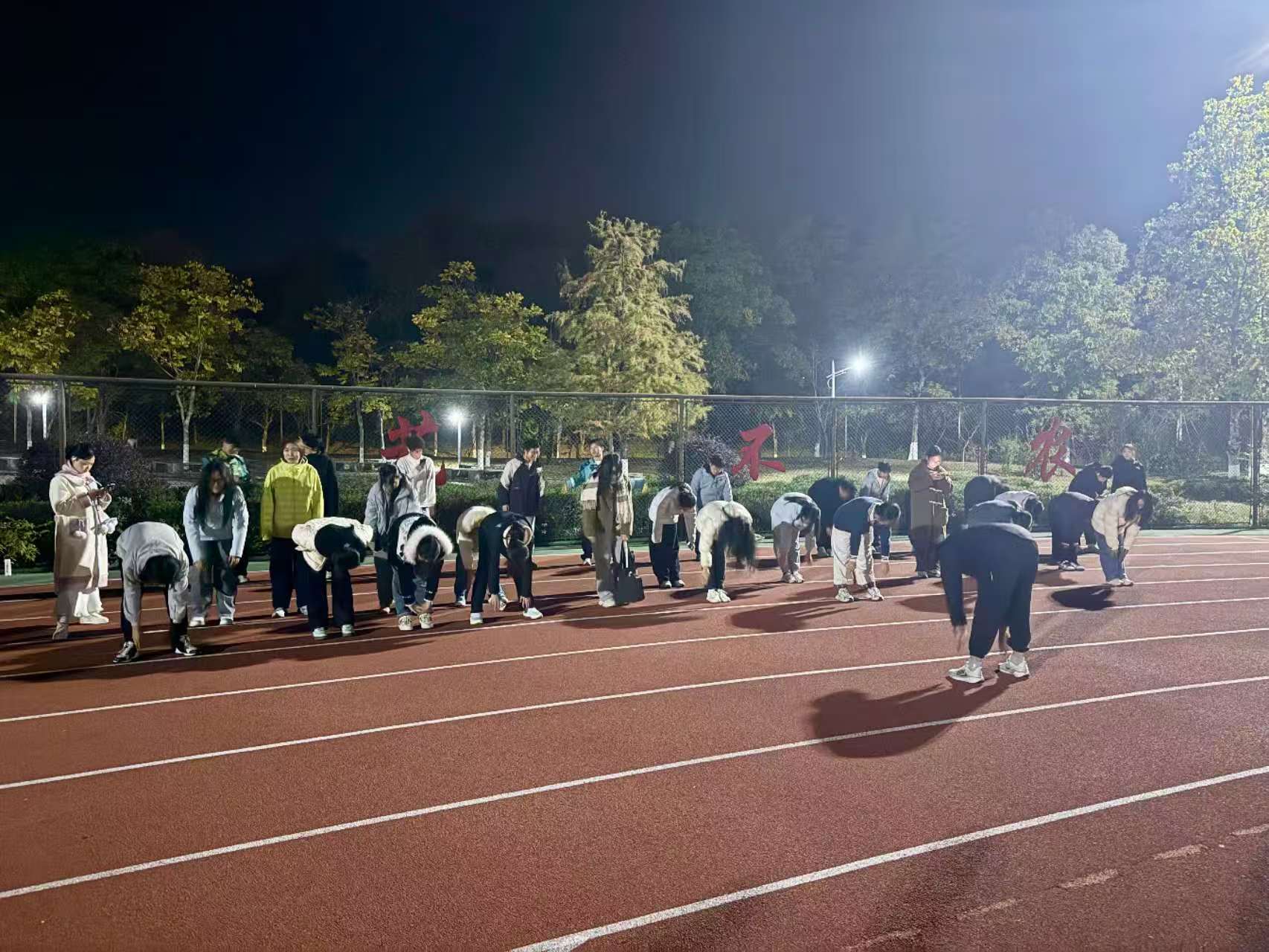 夜跑活动分批开展,在体育部干事及各班文体委员的带领下,大家有序进行热身跑、关节舒展等准备活动,为后续跑步做好充分准备。